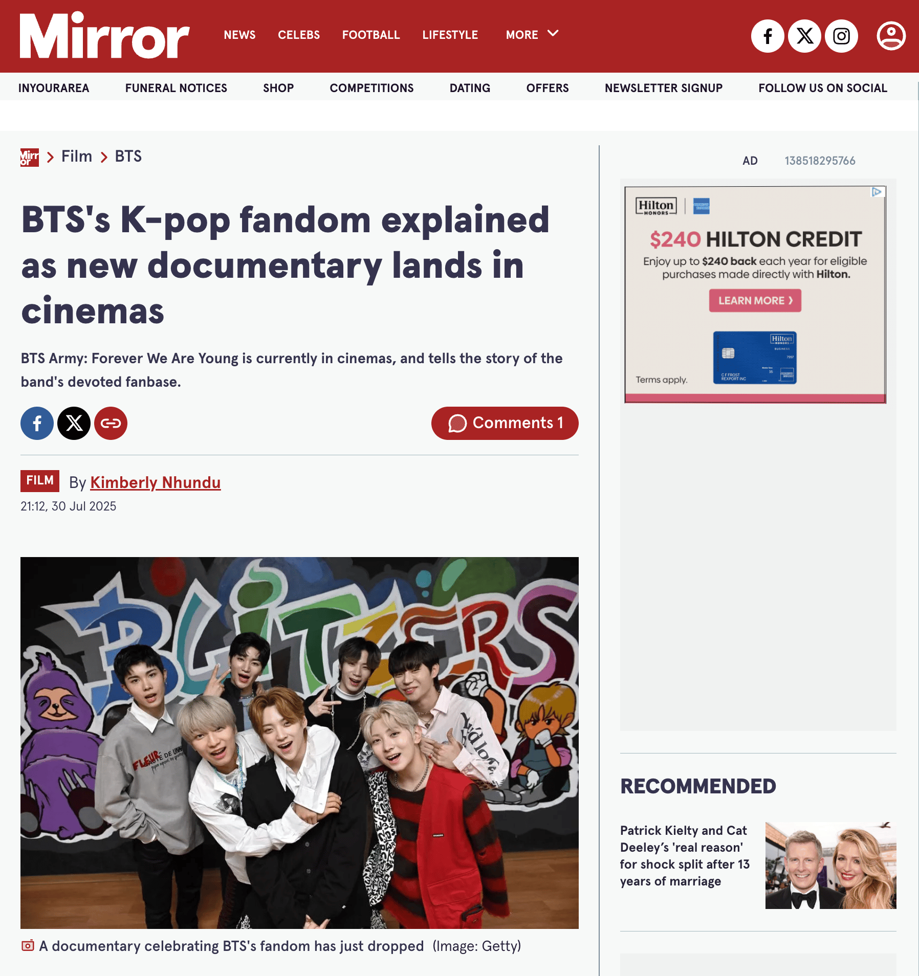 —Apparently, there are people on this Earth who don’t know what BTS looks like. The Mirror previewed the upcoming theatrical release of “BTS Army: Forever We Are Young” (the fan-created documentary that, despite having the blessing of HYBE and BIGHIT MUSIC, has irked some fans into calling for a “boycott”) but used a photo of another seven-member boy band, BLITZERS, instead.